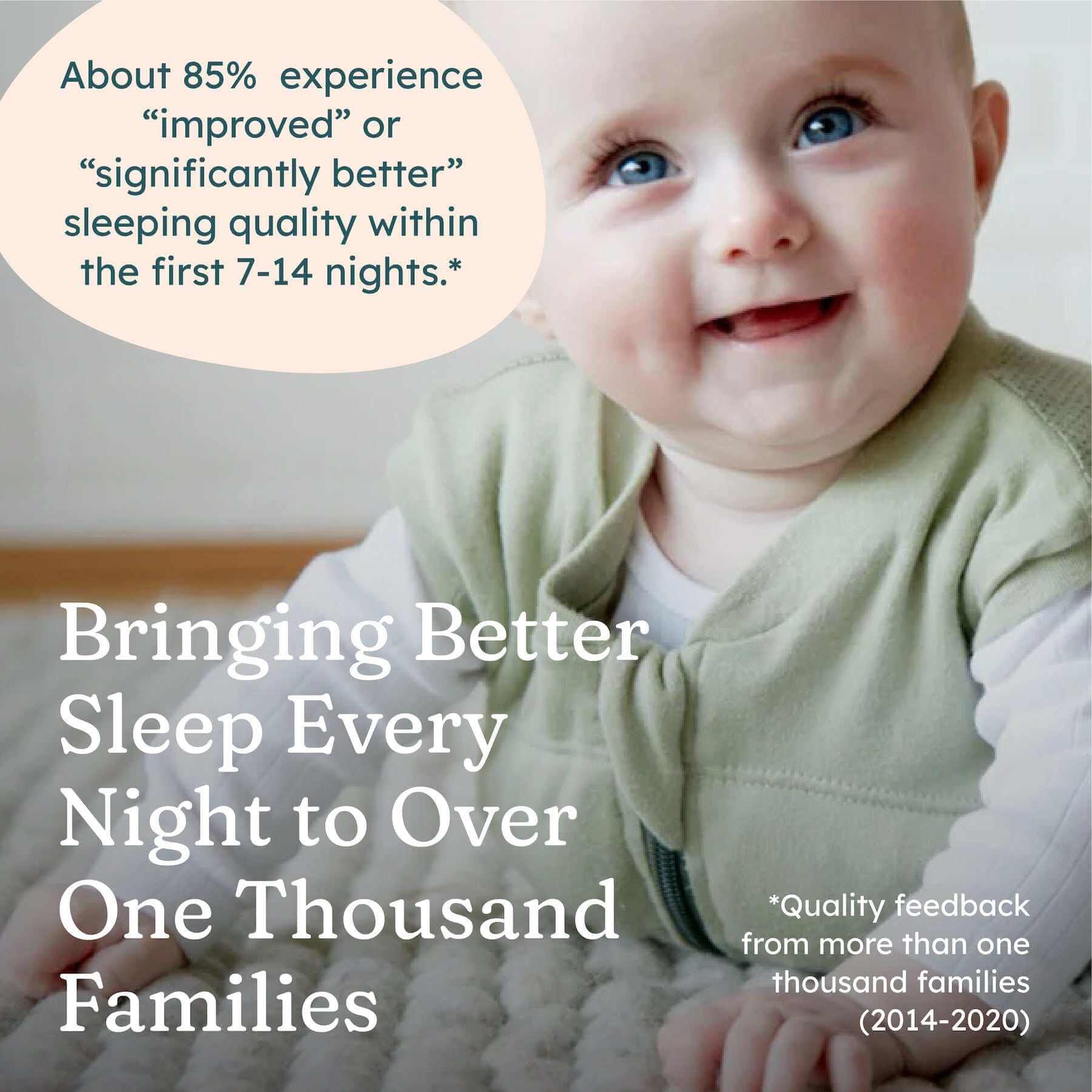 Over 85 % af familierne har rapporteret “forbedret” eller “markant bedre” søvnkvalitet inden for blot 7–14 nætter.*