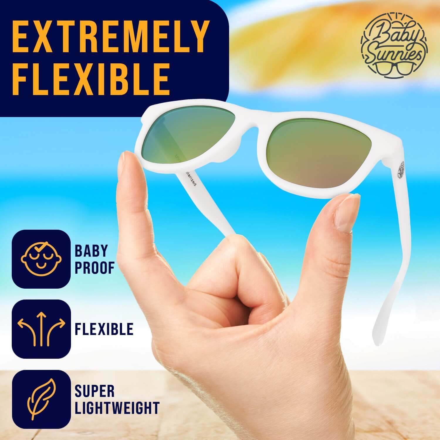 Hvide polariserede baby solbriller 3-8 år